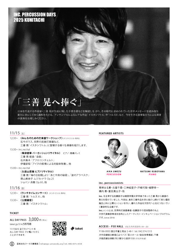 2025年11月15日(土)・16日(日) inc. percussion days 2025 KUNITACHI「三善 晃へ捧ぐ」