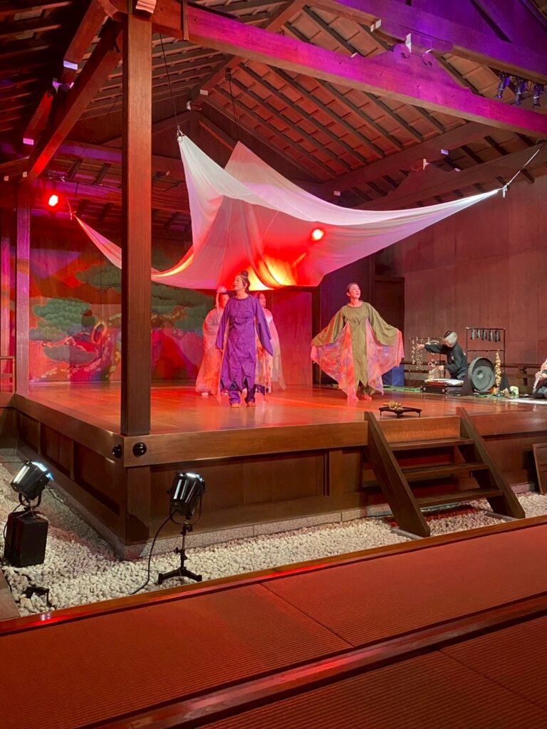 石牟礼道子氏の作品を音楽詩劇、能舞として、南青山にある能楽堂「銕仙会能楽研修所」にて上演するというもので、私が出演した「緑亜紀の蝶」という作品は2020年に初演され、今回は2度目の再演でした。